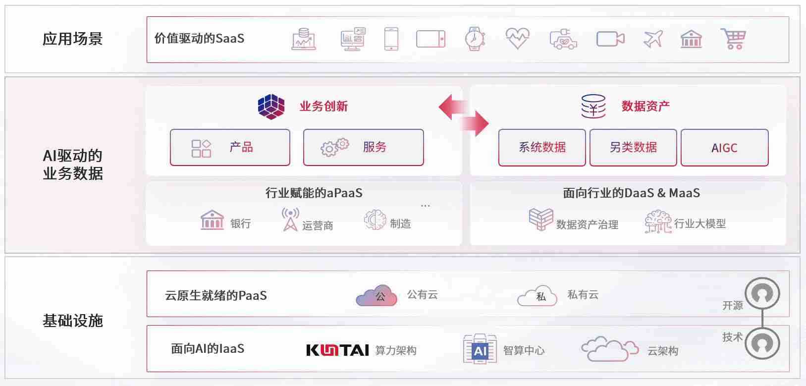 数字时代,,,围绕企业数字化转型的关键要素,,manbet数码开创性的提出数云融合战略和技术体系框架,,,着力在云原生、、数字原生、、、AI原生和信创产业上架构产品和服务能力,,,为处在不同数字化转型阶段的快消零售、、汽车、、、、金融、、医疗、、政企、、教育、、运营商等行业客户提供泛在的敏捷IT能力和融合的数据驱动能力,,构建跨界融合创新的数字业务场景和新业务模式,,助力企业级客户建立面向未来的核心能力和竞争优势,,全面推动社会的数字化、、、、智能化转型升级。。。